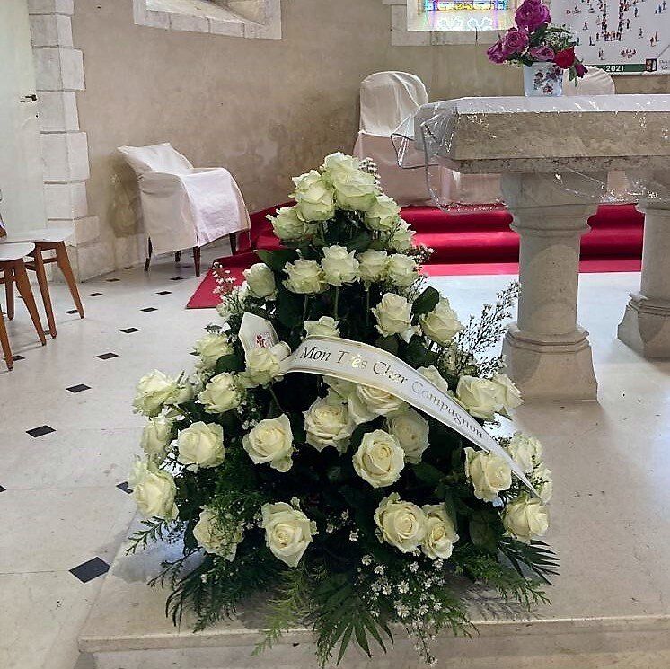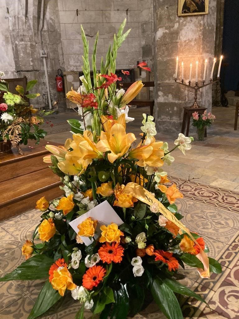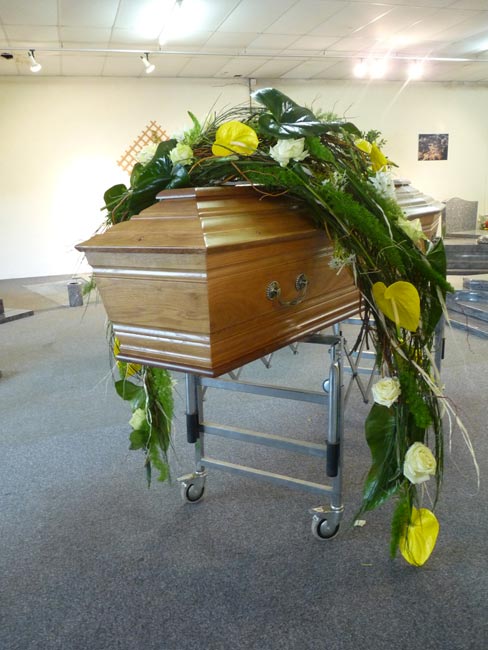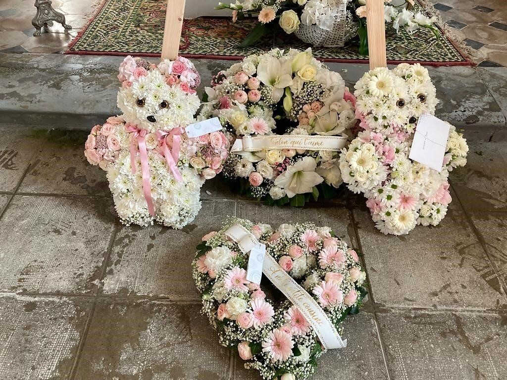 Nous créons de multiples compositions florales pour la cérémonie d'enterrement.